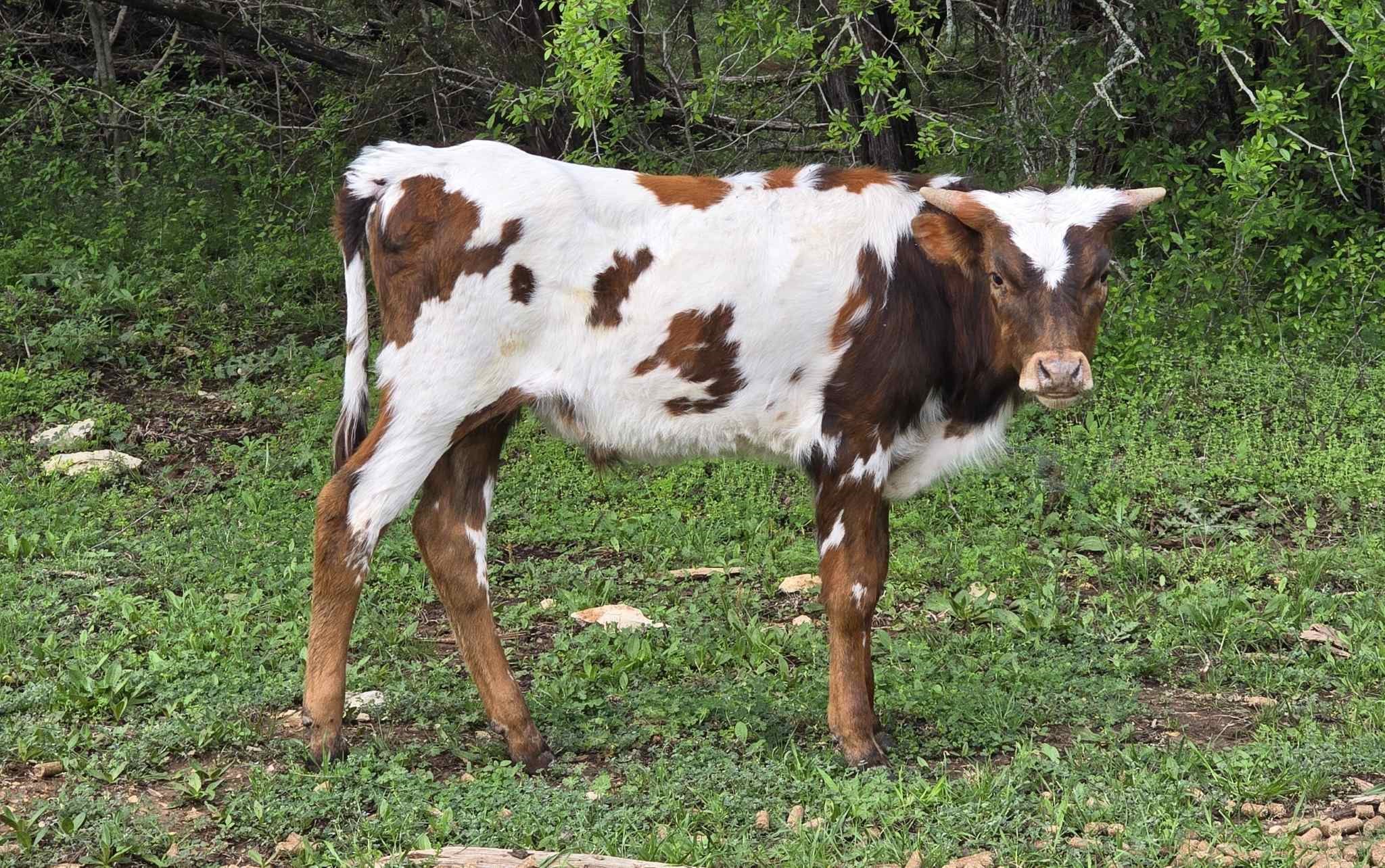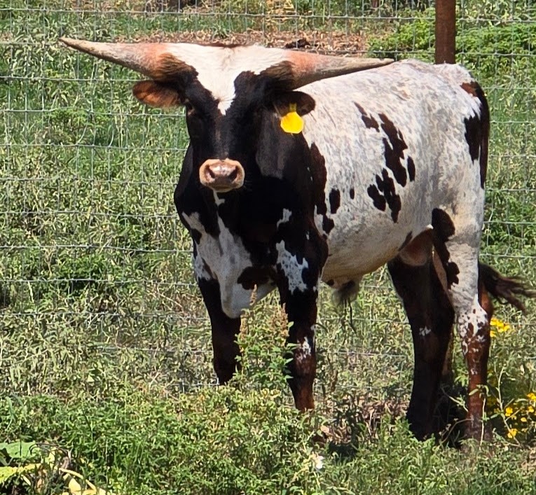 We are so excited to watch this herd sire prospect grow and develop. He already has the presence of a bull even at his young age. He is the cross of our Cowgirl Casanova with KDK Wildfire and that looks to be a powerful pairing. With both of his parents impressive horn growth and stature this is a bull to watch for the future.